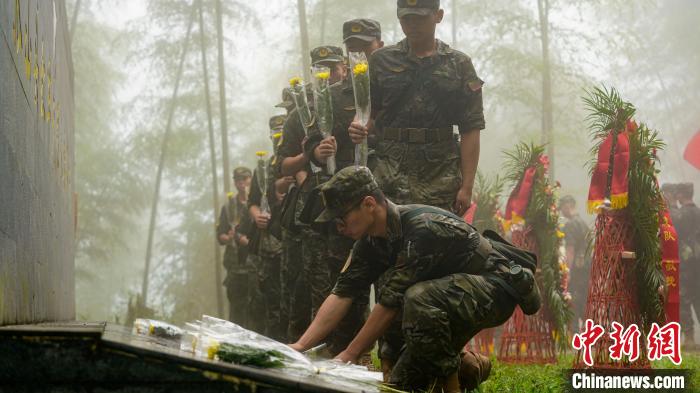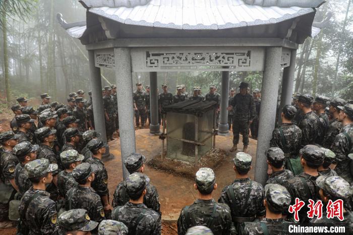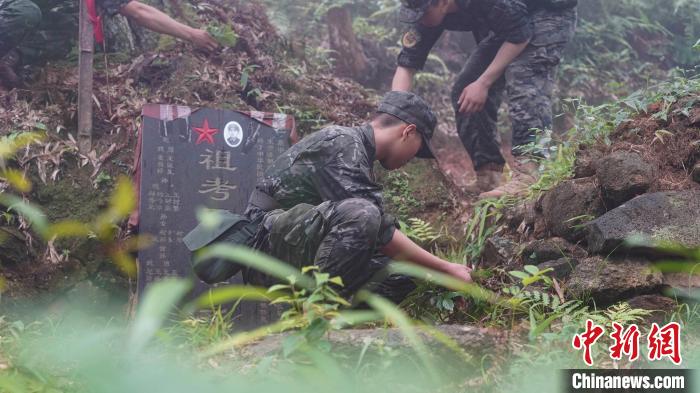 官兵徒步行軍至武夷山市洋莊鄉(xiāng)小漿村張山頭無名紅軍烈士墓群,開展“追尋紅色印記、賡續(xù)紅色血脈”參觀見學(xué)活動(dòng)。中新社記者 張麗君 攝