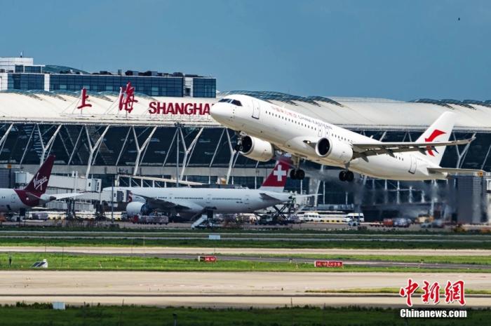 7月16日,東航第二架國(guó)產(chǎn)C919大型客機(jī)從浦東機(jī)場(chǎng)起飛。