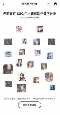 在提供素材后,往往要等待幾個小時才能完成“數字分身”制作。 截圖自妙鴨相機小程序。