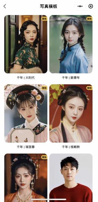 經過一個下午的漫長等待,終于可以挑選自己喜愛的,堪比天真藍、海馬體照相館級別的質感寫真了。從微信公眾號公開的33款模板來看,女性肖像模板豐富,有27款,包括清歡、奢感光、都市正裝等,男性模板僅6種,比如白衣、正裝、默片等。