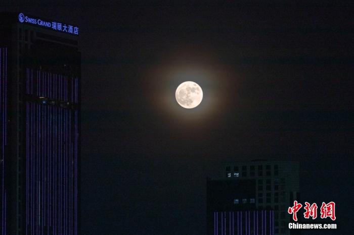 資料圖:一輪“超級月亮”現(xiàn)身南京上空。中新社記者 泱波 攝