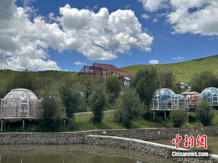 在園區(qū)內(nèi),除了大面積的草場,還能看見一些臨水而建、顏色各異的圓形房間。王春貴介紹稱,那是供游客休閑的星空房。目前,紅原牦?,F(xiàn)代農(nóng)業(yè)園區(qū)正朝著牧旅融合的道路發(fā)展,咖啡屋、星空房等休閑設(shè)施以及牧旅融合體驗(yàn)區(qū)已初步建設(shè)完成?!叭拷ǔ梢院螅慰瓦€能在園區(qū)內(nèi)體驗(yàn)牦牛喂養(yǎng)?!蓖醮嘿F說。