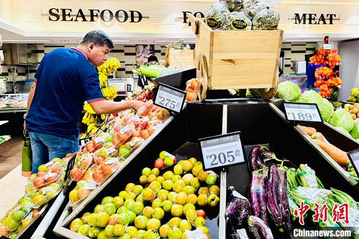 當?shù)貢r間8月4日,菲律賓大馬尼拉地區(qū)馬卡蒂市,市民在超市選購水果。 中新社記者 張興龍 攝