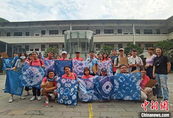 臺(tái)灣青年參加臺(tái)胞青年千人夏令營(yíng)貴州分營(yíng),展示親手制作的非遺印染技藝作品。周燕玲 攝