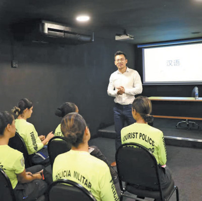 為更好地保障中國游客安全,里約旅游警察局和中國駐里約總領事館合作推出的里約旅游警察中文培訓班日前正式開班。該培訓班分為10個課時,由里約天主教大學孔子學院的教師授課。當?shù)鼐瘑T丹妮爾·克雷斯說,中國游客將為推動里約經(jīng)濟發(fā)展發(fā)揮重要作用,“我愿與同事一起為保障游客安全、促進巴中人民友好往來貢獻力量?!?/p>