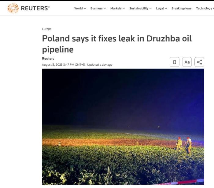 中新網(wǎng)8月8日電 據(jù)路透社報道,當(dāng)?shù)貢r間8日,波蘭石油管道運營商PERN稱已修復(fù)德魯日巴輸油管道,恢復(fù)正常運營。