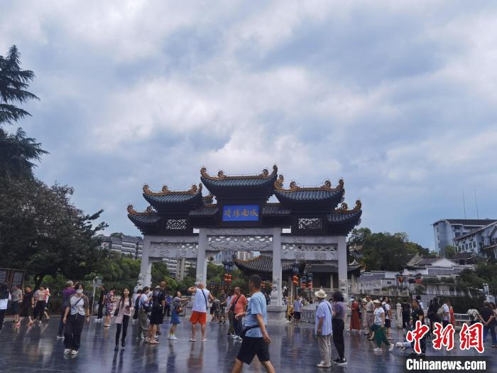 8月1日,來自中國各地的游客在貴陽市甲秀樓參觀游覽。周燕玲攝