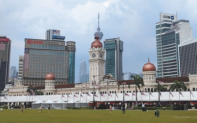 馬來(lái)西亞吉隆坡獨(dú)立廣場(chǎng)上,人們駐足拍照。