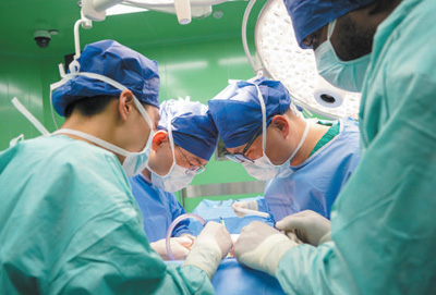 8月10日,醫(yī)生在中國(guó)海軍“和平方舟”號(hào)醫(yī)院船上,為瓦努阿圖患者進(jìn)行手術(shù)。