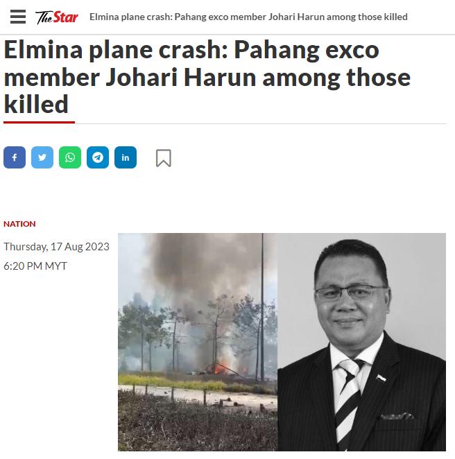 中新網(wǎng)8月17日電 據(jù)馬來西亞《星州日報》援引警方消息稱,當?shù)貢r間17日,馬來西亞雪蘭莪州發(fā)生墜機事故,造成至少10人死亡,其中一名死者為該國彭亨州行政議員喬哈里·哈倫。