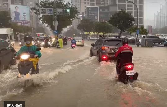 據(jù)報(bào)道,在高雄鳥松區(qū)、鳳山區(qū)、三民區(qū)等地都出現(xiàn)淹水情況,有路段積水甚至一度達(dá)43厘米,馬路汪洋一片,水淹及膝、超過半個(gè)輪胎高,許多騎車、開車的上班族都被困在路中央。島內(nèi)網(wǎng)友們被這場大雷雨嚇壞,紛紛留言“好可怕”“根本像劃船”。