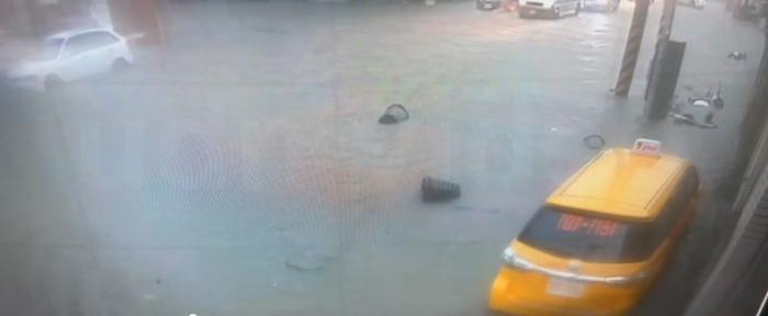圖為臺灣高雄市路面淹水。圖片來源:臺灣“中時(shí)新聞網(wǎng)”視頻截圖