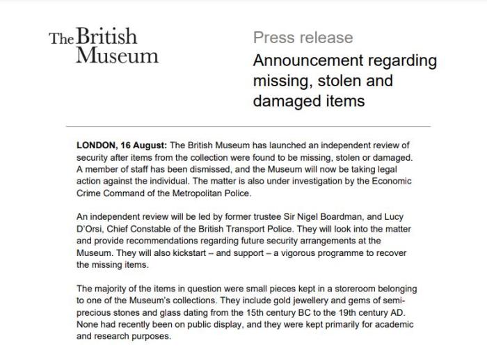 奧斯本稱,“對于所有熱愛大英博物館的人來說,這是悲傷的一天,但我們決心糾正錯誤,并利用這次經(jīng)驗來建設(shè)一個更強(qiáng)大的博物館?!?/p>