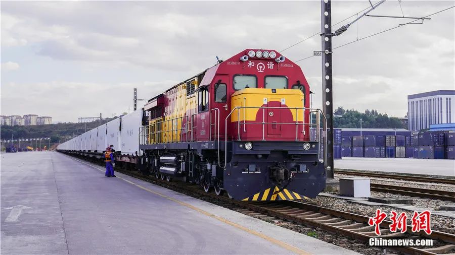 中老鐵路“瀾湄快線”國際貨物列車從昆明始發(fā)。王潘博 攝