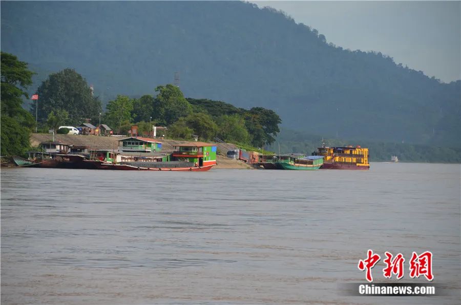 停泊在瀾滄江-湄公河岸邊的各國商船??姵?攝