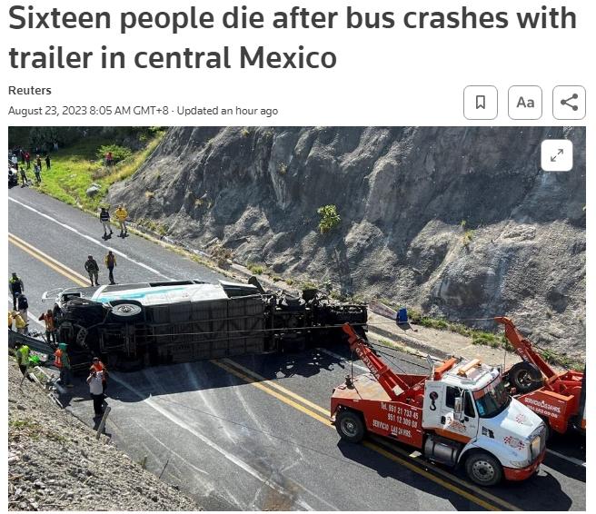 另?yè)?jù)路透社報(bào)道,該大巴車共載有52名乘客,主要是來(lái)自委內(nèi)瑞拉的移民。遇難者中有15名墨西哥人和1名委內(nèi)瑞拉人。當(dāng)前,傷者已被送到普埃布拉的醫(yī)院接受治療。
