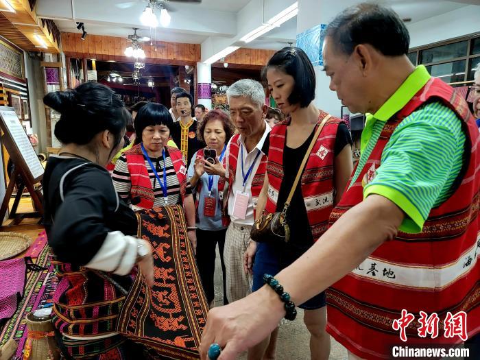 臺北市商業(yè)總會一行在海南檳榔谷景區(qū)觀看黎錦作品?!⊥鯐员?攝