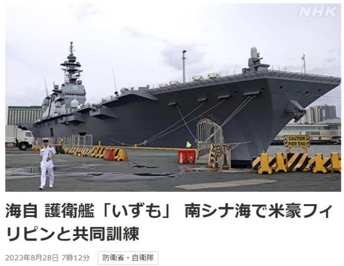 中新網(wǎng)8月28日電 綜合日媒報(bào)道,27日,日本海上自衛(wèi)隊(duì)公開了準(zhǔn)航母“出云”號(hào)??糠坡少e首都馬尼拉的畫面,并稱該艦在24日曾與美國、澳大利亞和菲律賓三國軍艦進(jìn)行了聯(lián)合演習(xí)。