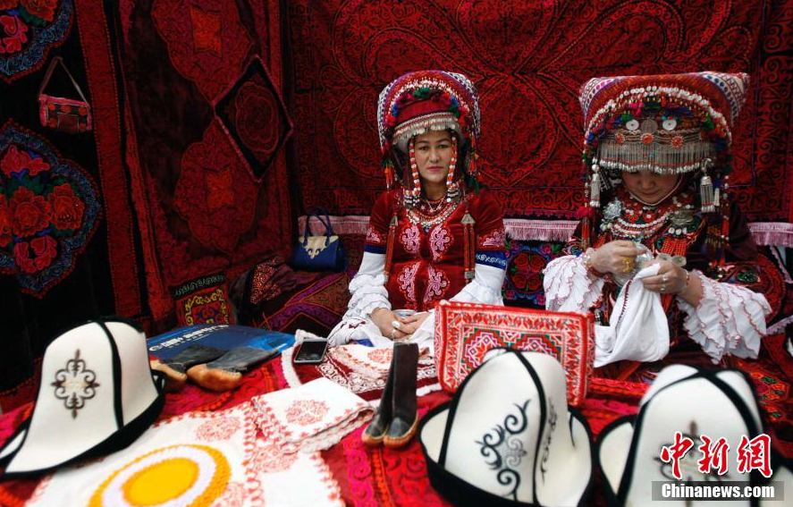 圖為新疆柯?tīng)柨俗巫迨止ご汤C展臺(tái)。王小軍 攝