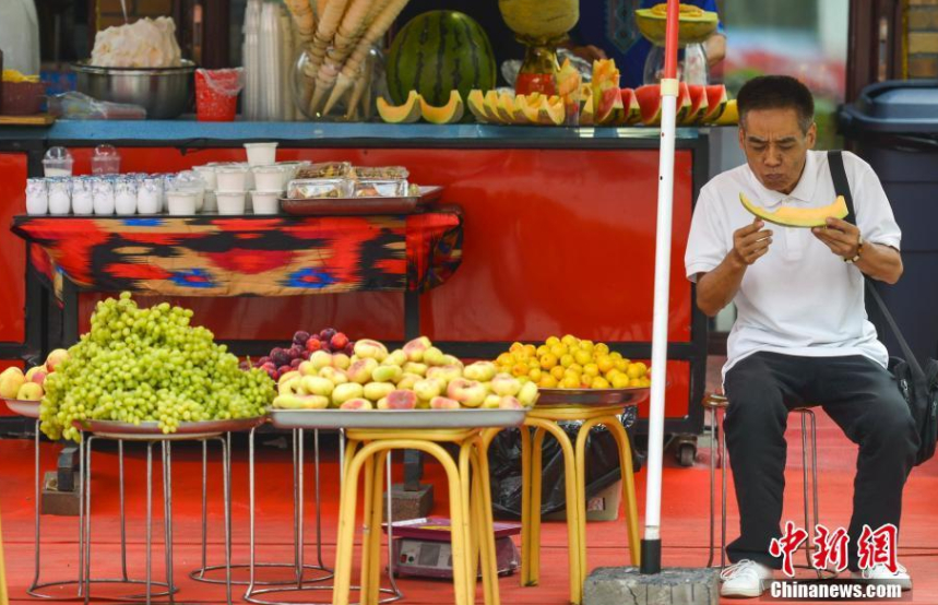 盛夏時(shí)節(jié),新疆又迎來(lái)一年瓜果飄香時(shí),游客隨時(shí)隨地都可品嘗到最美味的瓜果。劉新 攝