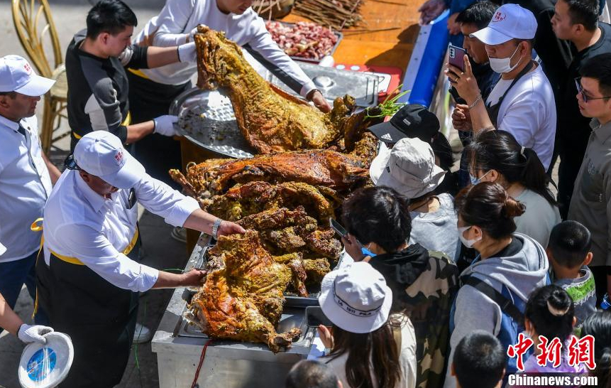 游客品嘗烤全羊。劉新攝