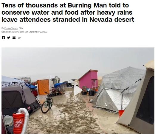中新網(wǎng)9月3日電 據(jù)美國有線電視新聞網(wǎng)(CNN)報道,當(dāng)?shù)貢r間2日,美國內(nèi)華達州黑巖沙漠突降暴雨,數(shù)萬名到此地參加“火人節(jié)”的游客被困沙漠中。