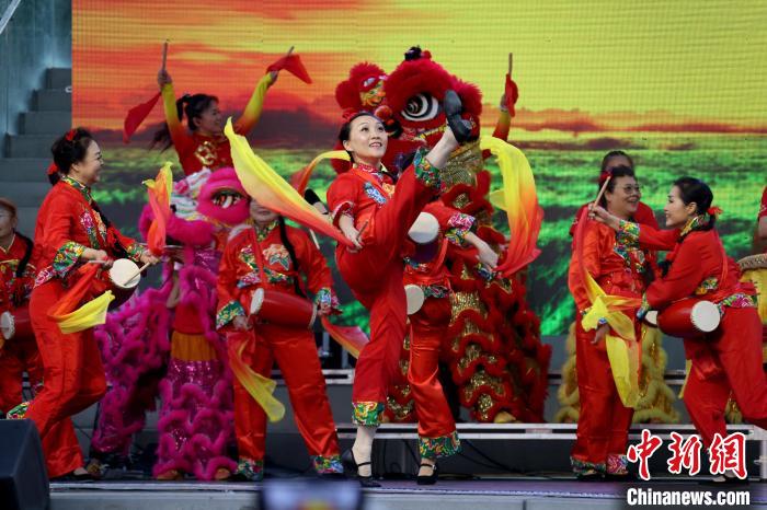 當?shù)貢r間9月1日,加拿大多倫多,演員在第四屆龍文化節(jié)開幕式上進行腰鼓表演。 中新社記者 余瑞冬 攝