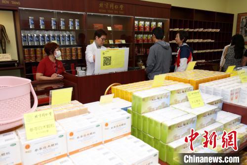 當(dāng)?shù)貢r間9月1日,加拿大多倫多,北京同仁堂位于大多倫多地區(qū)的第四家分店在安大略省列治文山(Richmond Hill)市開業(yè)。圖為當(dāng)?shù)仡櫩驮谠撻T店詢購中藥?!≈行律缬浾?余瑞冬 攝