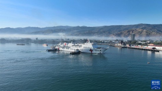 9月3日,中國海軍“和平方舟”號醫(yī)院船抵達(dá)東帝汶帝力港。新華社發(fā)(桂江波 攝)