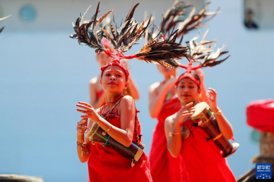 9月3日,中國海軍“和平方舟”號醫(yī)院船抵達(dá)東帝汶帝力港,當(dāng)?shù)孛癖姳硌萏厣栉铓g迎。新華社發(fā)(黎宇 攝)