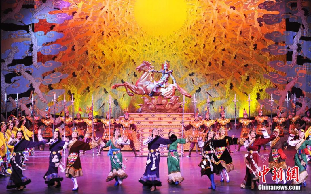 取材于藏族英雄史詩《格薩爾王傳》的大型原創(chuàng)民族舞劇《英雄格薩爾》演出劇照。安源 攝
