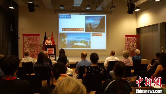 圖為開幕式現(xiàn)場,孫勤航向觀眾介紹江西。柏林中國文化中心供圖