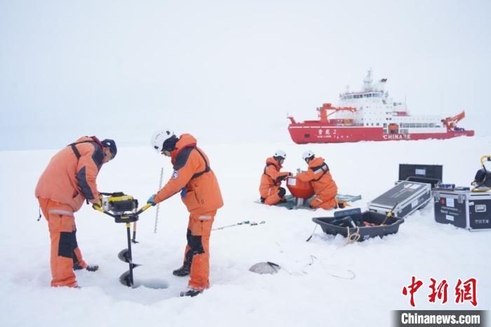 近日,中國第13次北冰洋科學考察隊在北極點附近開展海冰綜合作業(yè)。(自然資源部供圖)