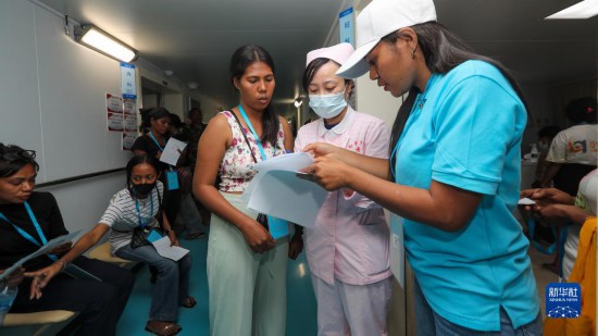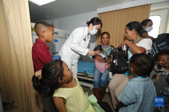 中國(guó)海軍“和平方舟”號(hào)醫(yī)院船訪問(wèn)東帝汶并開(kāi)展醫(yī)療服務(wù)期間,醫(yī)院船醫(yī)護(hù)人員為當(dāng)?shù)孛癖娞峁┽t(yī)療服務(wù)(9月8日攝)。新華社發(fā)(黎宇 攝)