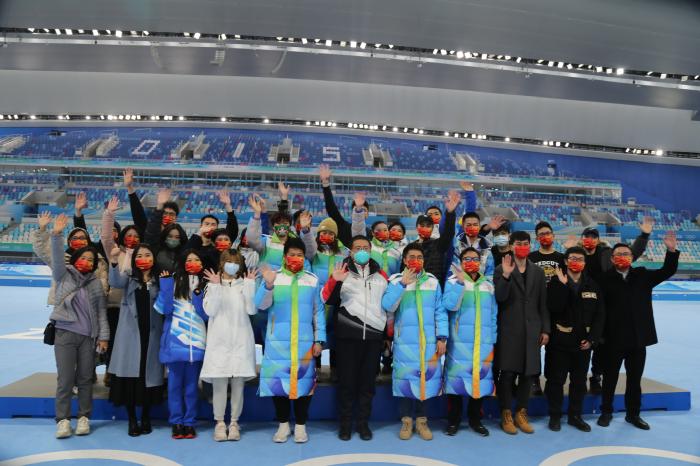 北京大學(xué)體育教研部臺籍教師陳文成組建的臺胞志愿者服務(wù)隊(duì)在北京冬奧會上合影。 本人供圖