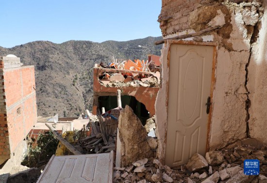 這是9月11日在摩洛哥馬拉喀什南部的穆萊村拍攝的地震損壞的建筑。新華社記者王東震攝