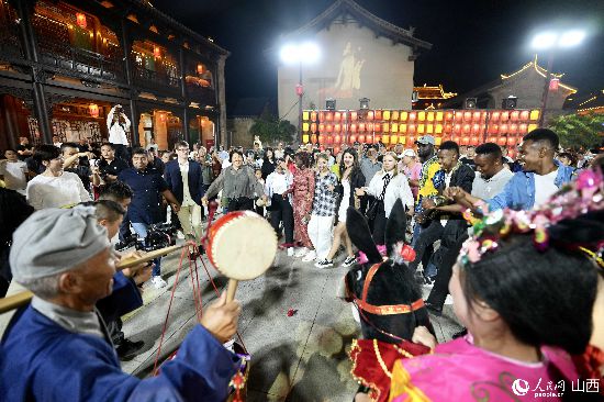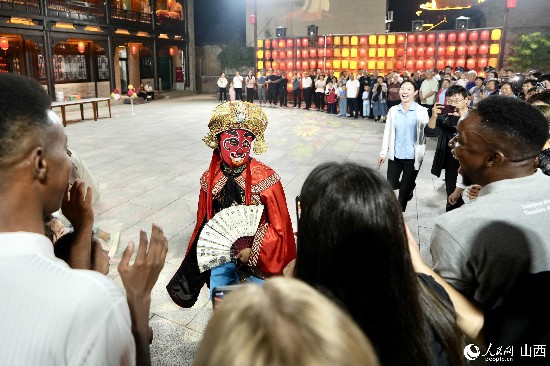 眼花繚亂的民俗表演,沉浸式的古城巡游,絢爛的城樓燈光秀,陶醉的狂歡……9月15日夜晚,在即將結(jié)束山西之行的前夜,2023“漢字緣”國際故事大會決賽的選手們夜游山西省晉城市陽城縣郭峪古城,于燈火闌珊處感受古城中的人間煙火。(人民網(wǎng) 盧鵬宇攝)
