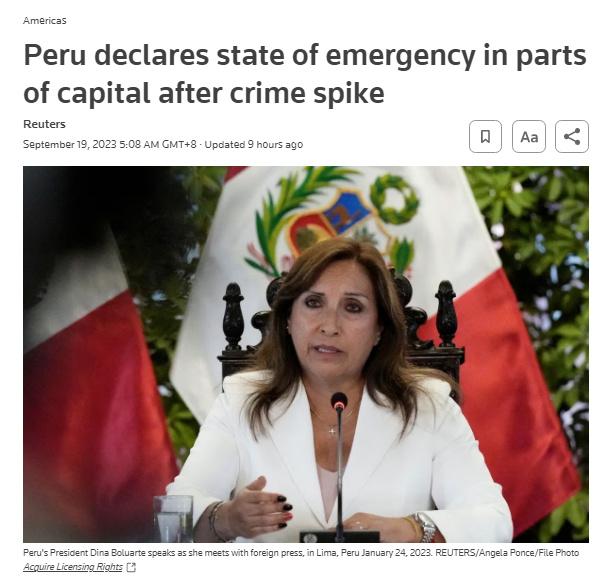 犯罪率飆升 秘魯宣布這些地區(qū)進(jìn)入緊急狀態(tài)