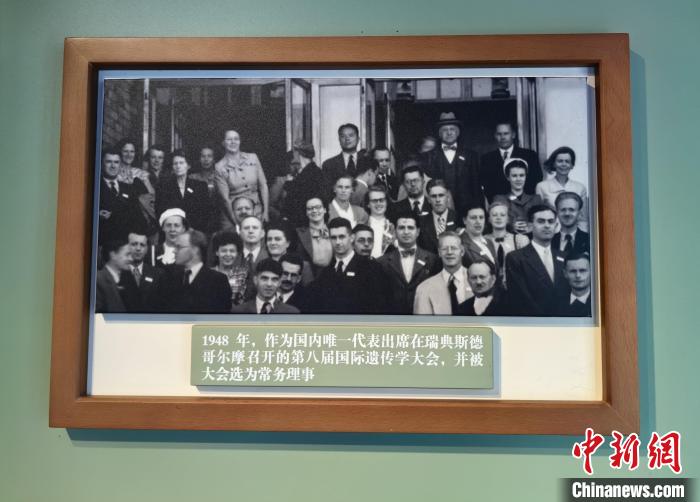談家楨舊居內一張老照片,展示談家楨1948年出席在瑞典斯德哥爾摩召開的第八屆國際遺傳學大會。范宇斌 攝