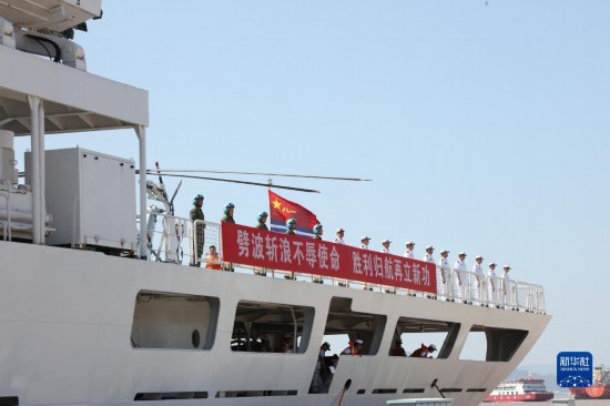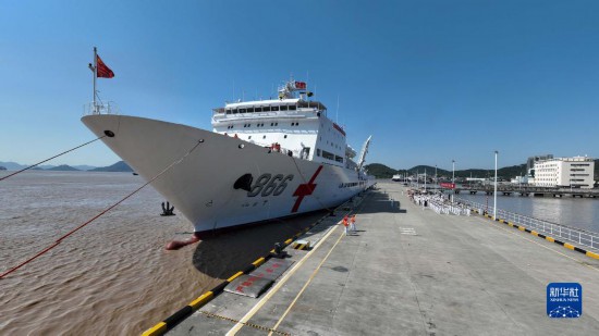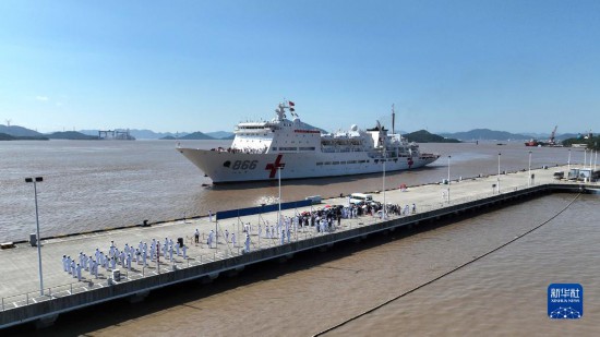 9月19日,執(zhí)行“和諧使命-2023”任務(wù)的海軍“和平方舟”號醫(yī)院船順利返回浙江舟山母港。新華社發(fā)(桂江波 攝)