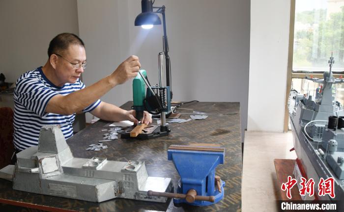 “這艘艦是用鍍鋅板按100∶1的比例制作的,花了我大概3年的業(yè)余時(shí)間,純手工制作?!?980年曾服役于東海艦隊(duì),1983年退伍的漳州薌城籍海軍老兵潘雄告訴記者,他專(zhuān)注制作艦艇模型近40年,平均每?jī)赡暝煲凰?,目前已造出“遼寧號(hào)”航母、中華神盾艦等各類(lèi)艦艇20艘模型,并有兩艘055型驅(qū)逐艦?zāi)P驼谥谱髦小?/p>