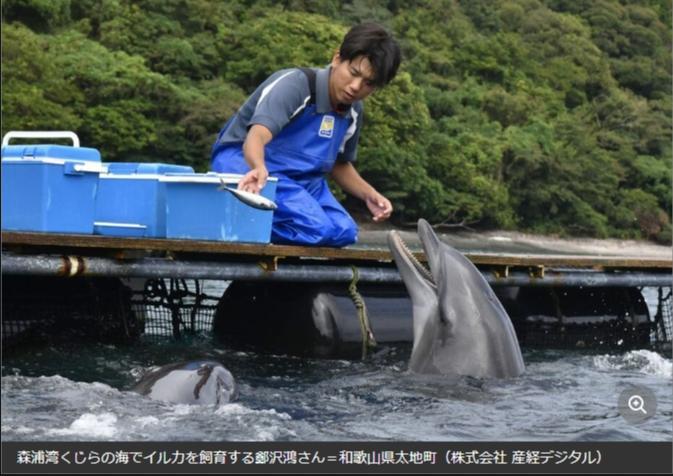 在“森浦灣鯨之海”飼養(yǎng)海豚的鄭澤鴻。圖片來源于《產(chǎn)經(jīng)新聞》報道截圖。