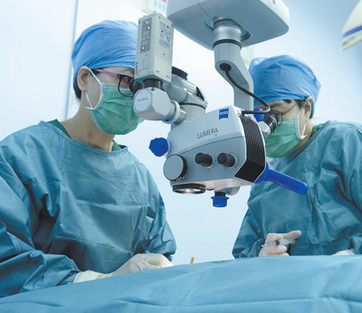 9月16日,北京大學(xué)人民醫(yī)院“健康快車國際光明行”醫(yī)療隊(duì)醫(yī)生鮑永珍(左)和孟慶娛正在為吉爾吉斯斯坦患者實(shí)施白內(nèi)障復(fù)明手術(shù)。