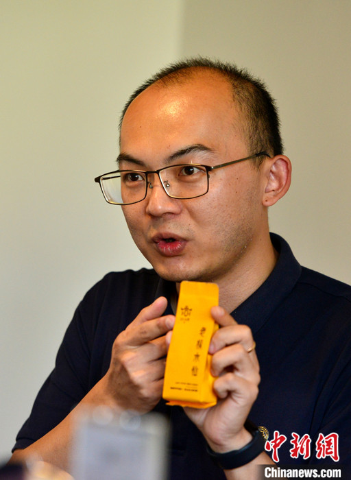 圖為9月19日,曾冠穎在“101公館”展示自己在漳州長泰茶山生產(chǎn)的臺(tái)灣茶。 中新社記者 張斌 攝