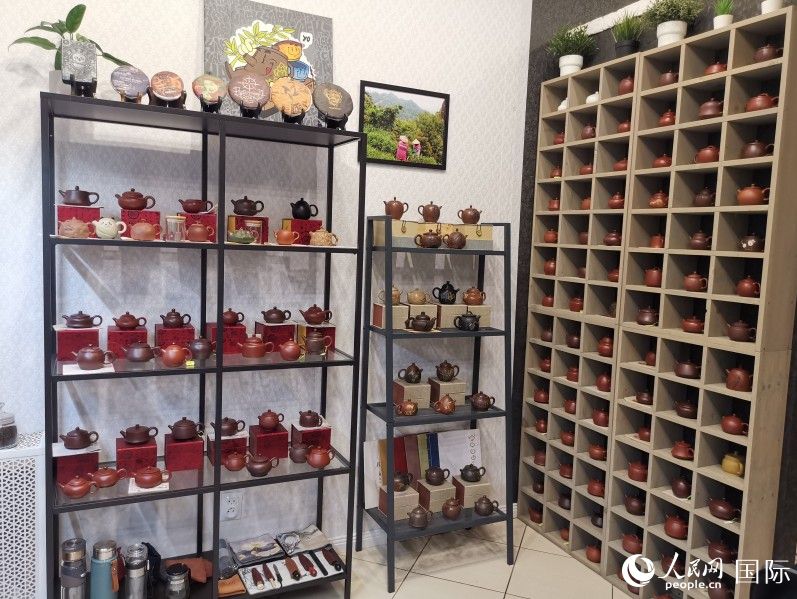 馬克西姆的茶葉店擺放著來自中國宜興、景德鎮(zhèn)等地方的茶壺。 人民網記者 楊倩攝
