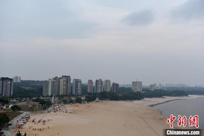 10月15日,馬瑙斯著名景點亞馬孫河畔的Ponta Negra沙灘。河水消退,河床大面積裸露已持續(xù)兩個多月。中新社記者 林春茵 攝