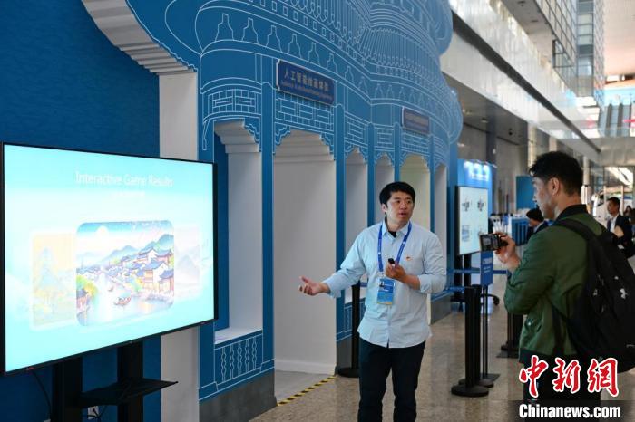 在人工智能繪畫(huà)和動(dòng)畫(huà)體驗(yàn)區(qū),體驗(yàn)者只需在現(xiàn)場(chǎng)觸控屏前隨意勾畫(huà)線(xiàn)條輪廓,智能引擎將據(jù)此生成意境超拔的山水畫(huà)卷,讓觀(guān)眾體驗(yàn)前沿科技與傳統(tǒng)繪畫(huà)交融之趣。體驗(yàn)區(qū)內(nèi)的智能引擎還可建構(gòu)虛擬人物,生成動(dòng)畫(huà)短片暢游打卡勝地,讓體驗(yàn)者置身于古都風(fēng)貌和現(xiàn)代生活。