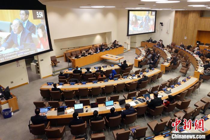張軍還代表28個(gè)國家作共同發(fā)言,揭批美西方濫施單邊強(qiáng)制措施,強(qiáng)調(diào)單邊強(qiáng)制措施違反《聯(lián)合國憲章》宗旨和原則以及國際法,有悖于多邊主義和國際關(guān)系基本準(zhǔn)則,對受制裁國家及其人民造成破壞性甚至致命后果,嚴(yán)重侵犯并剝奪了包括健康權(quán)和生命權(quán)在內(nèi)的各項(xiàng)人權(quán),呼吁立即徹底取消。