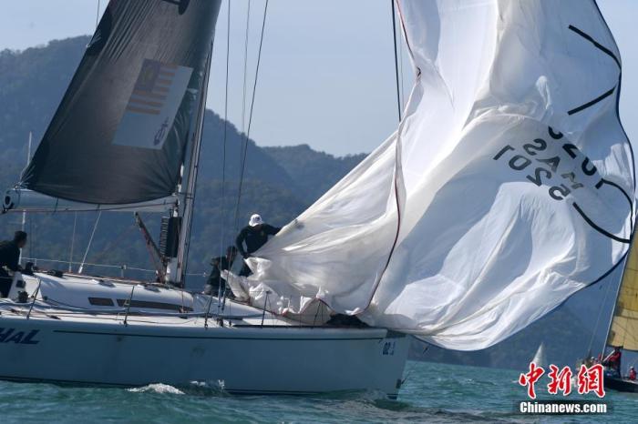 資料圖:2020年1月7日,“一帶一路”國際帆船賽馬來西亞站在馬來西亞蘭卡威附近海域開賽。圖為選手在比賽中。中新社記者 俞靖 攝