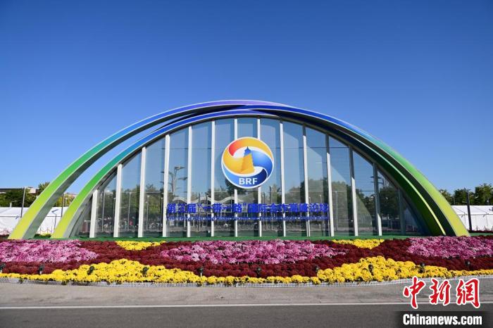 10月15日,北京,國家會議中心外的第三屆“一帶一路”國際合作高峰論壇景觀布置。當(dāng)日,位于國家會議中心的第三屆“一帶一路”國際合作高峰論壇新聞中心啟動試運行?!≈行律缬浾?田雨昊 攝